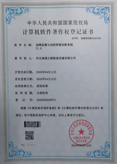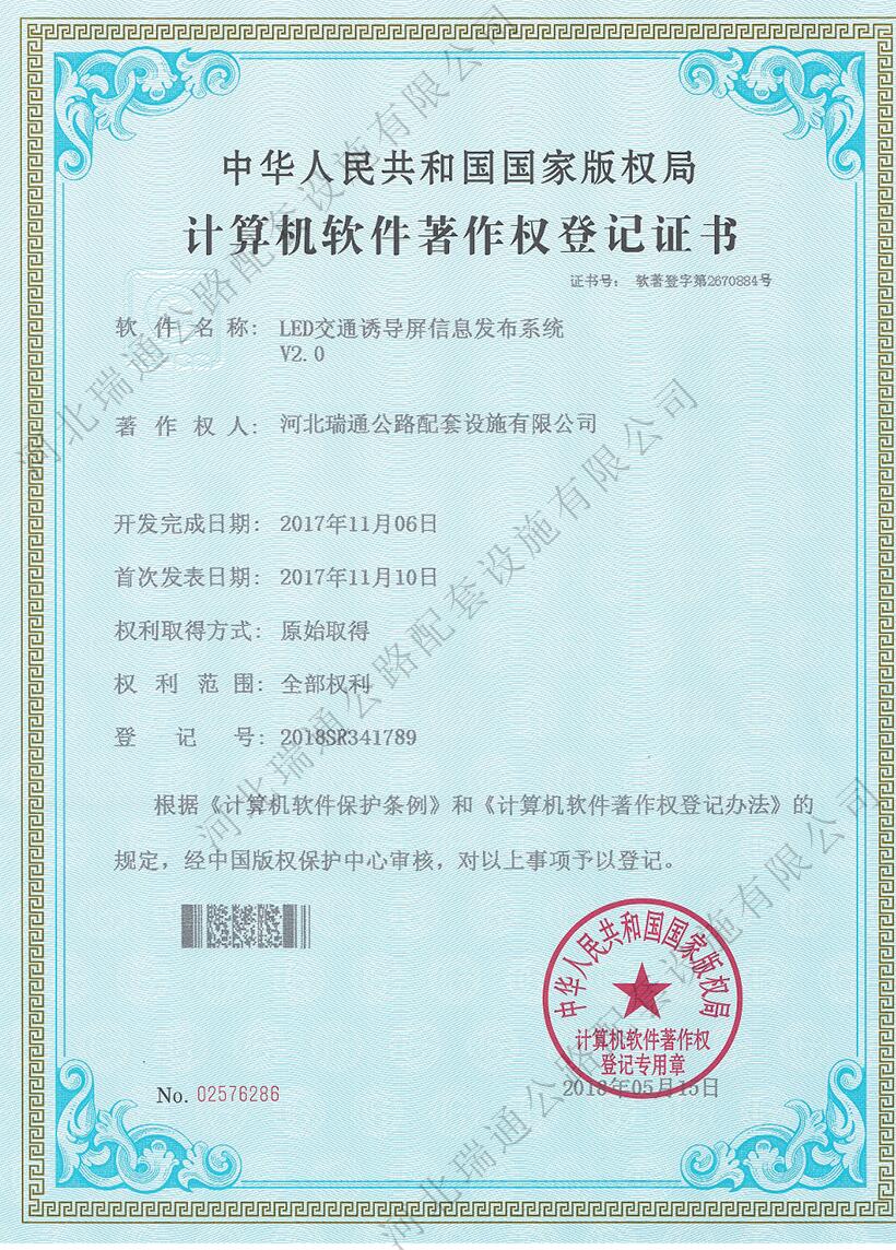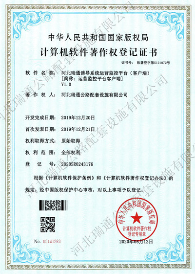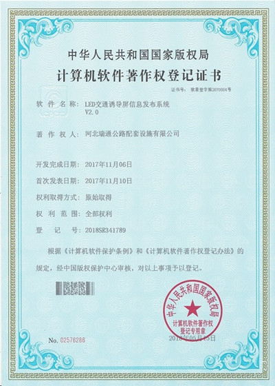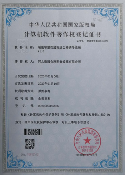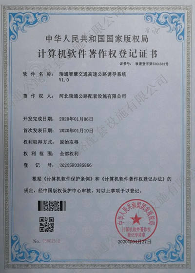 計(jì)算機(jī)軟件著作權(quán)-瑞通智慧交通高速公路誘導(dǎo)系統(tǒng)V1.0
