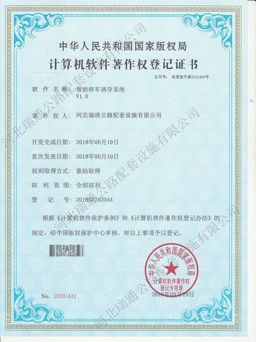 軟件著作登記證書(shū)—智能停車(chē)誘導(dǎo)系統(tǒng)V1.0