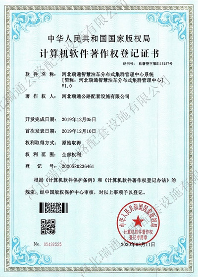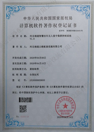 計(jì)算機(jī)軟件著作權(quán)-河北瑞通智慧泊車(chē)無(wú)人值守集群控制系統(tǒng)V1.0