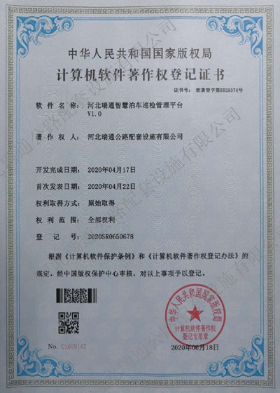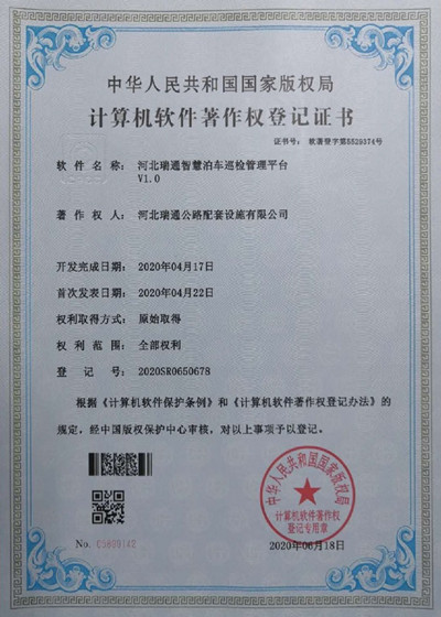 計(jì)算機(jī)軟件著作權(quán)-河北瑞通智慧泊車(chē)巡檢管理平臺(tái)V1.0
