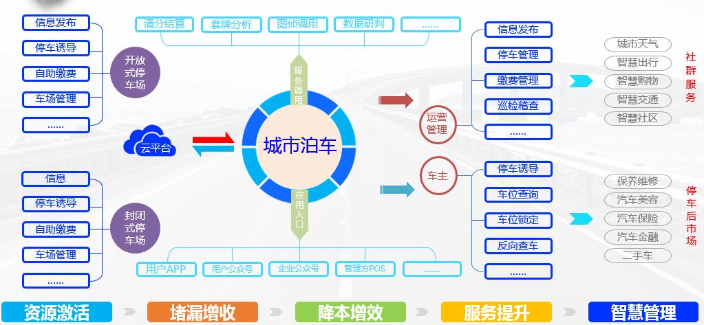 為打造“文明出行、智慧泊車”的停車管理新模式,以城市停車資源為主要管理標的,全面兼容市政、商業(yè)、居民小區(qū)等停車場,以視頻識別、移動互聯(lián)網(wǎng)傳輸、大數(shù)據(jù)處理形成技術解決方案,構建城市公共停車資源可視監(jiān)管平臺,共享線上收費的智能管理平臺,構建“互聯(lián)網(wǎng)+”模式下的靜態(tài)交通安全體系,對靜態(tài)車輛緝查布控。從而有效解決了因停車占道所造成的交通擁堵問題,通過經(jīng)濟杠桿+先進技術,實現(xiàn)交通擁堵的有效治理,有利于提升城市管理水平;通過技術手段有效解決停車難、亂停車的問題;通過停車誘導的服務功能為市民出行提供有效信息;通過靜態(tài)交通平臺的信息共享,實現(xiàn)一個APP聯(lián)動城市所有城區(qū)停車資源,為市民提供便利出行保障。